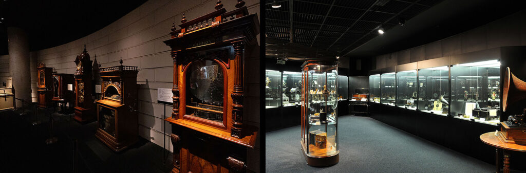 ユニークな小型オルゴールなどが展示されています。